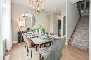 Upon entering the Explorers Walk Model Home, you’re immediately greeted by a large foyer and formal dining space, which opens to the heart of the home.